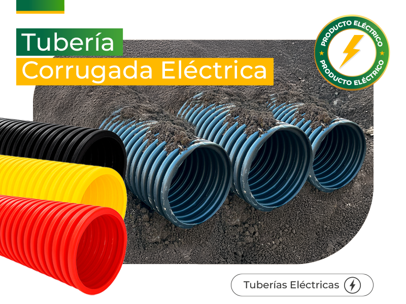 Tubo corrugado eléctrico de 110 mm en diferentes colores, fabricado en polietileno de alta densidad para proteger y organizar cableado eléctrico, ideal para proyectos residenciales, comerciales e industriales